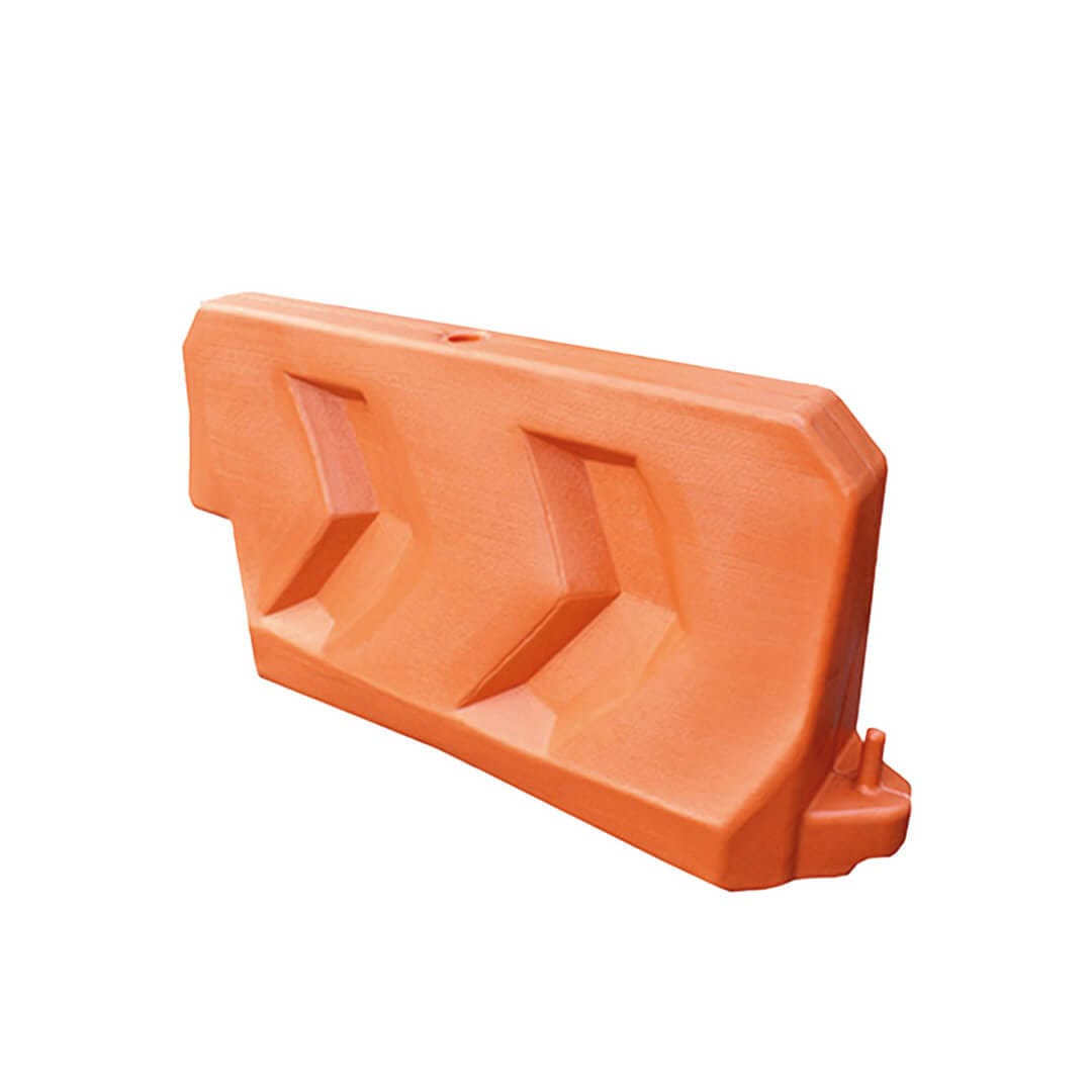 Descripción: Barrera de protección vial fabricada en polietileno altamente resistente. Color: Naranja. Anidable en 25 piezas. En caja seca de 53 pies, se pueden almacenar hasta 1300 barreras, canalizando 1950 metros lineales. Ensamble fácil y rápido. Medidas: Largo: 157 cm. Alto: 75 cm. Ancho: 40 cm. Sin reflejante.