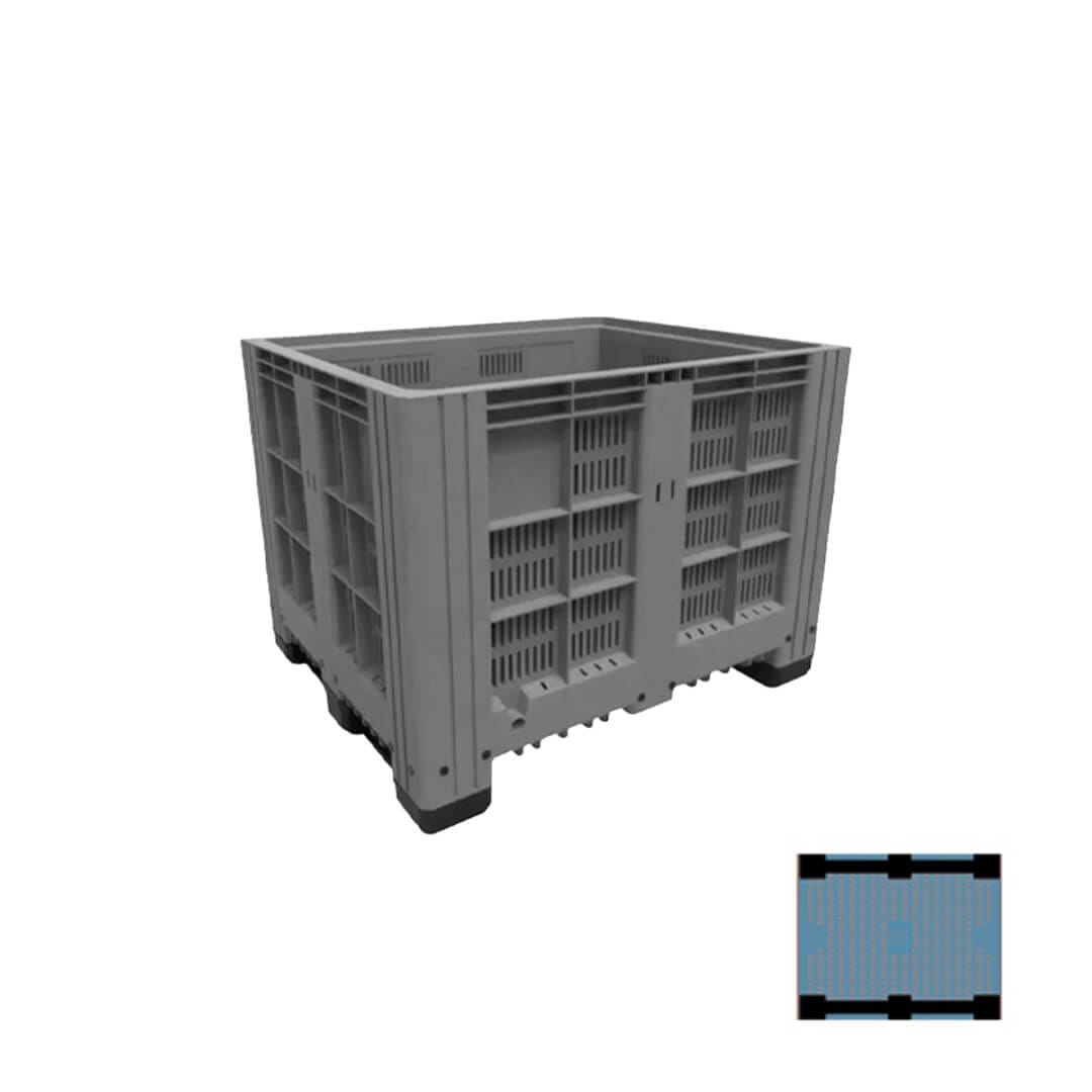 Descripción: Polietileno de alta densidad, resistencia máxima ante agentes acidos, basicos y alcalinos. U.V. estabilizado, 100% reciclable. Sin superficies cortantes, seguros al apilarse. Grado alimenticio aprobado por la FDA, el BIN ranurado. Dimensiones: Largo: 120 cm Ancho: 100 cm Alto: 82.5 cm 2 Traversas.Color: Gris.