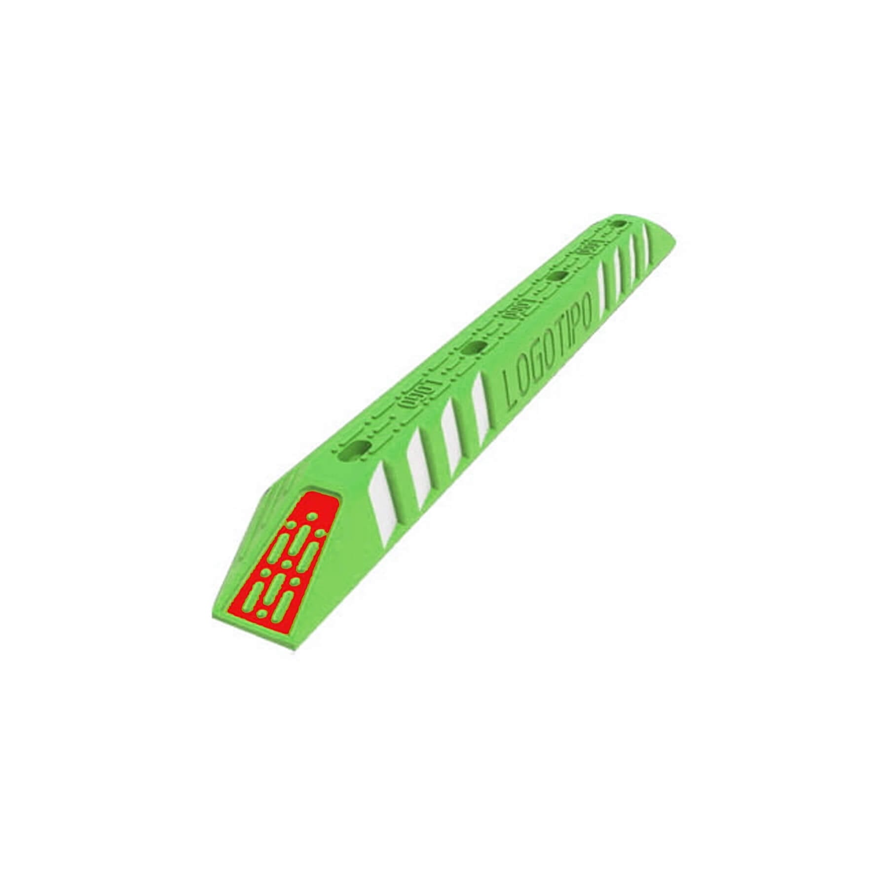 Descripción: Fabricado en polietileno de una sola pieza, opcional con hito de poliflexy (amarillo o naranja), con 2 reflejantes alta intensidad, seis orificios para anclas de sujeción y bordes redondeados. Superficie antiderrapante, fabricado en Color: Amarillo. Medidas: Largo: 180.0 cm. Ancho: 40.0 cm. Alto: 13.0 cm. Protección de rayos U.V. - 25