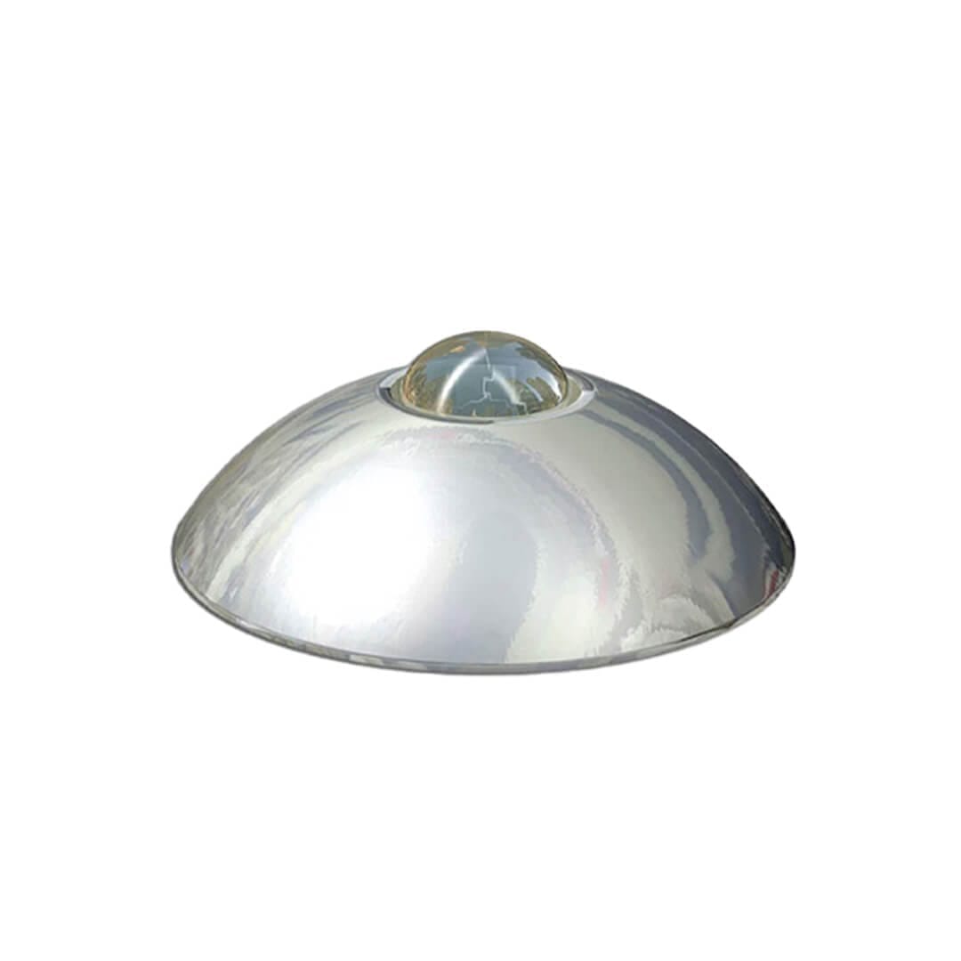 Descripción: Boya troquelada en acero inóxidable. Lámina calibre 18. De gran visibilidad de día y noche ya que cuenta con esfera de vidrio. Color: Natural. Medidas: diámetro: 13.5 cm. alto: 4.0 cm. No incluye perno.